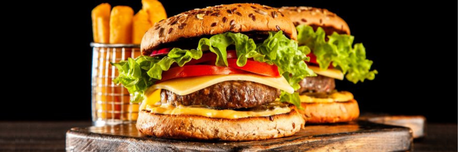 Pão, bife, batata, milho, queijo, bacon, alface e tomate